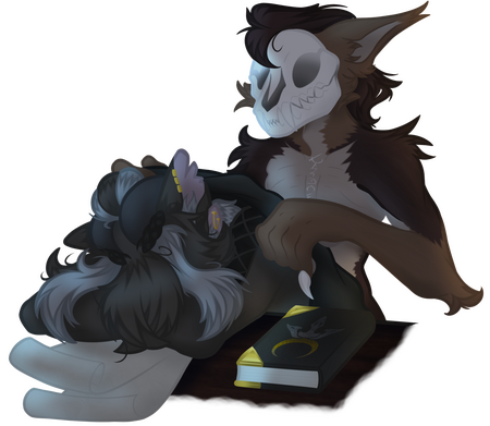 Bas is The Professor's assistant. Brought to life from one of their attempts to circumvent the end of the story, Bas shares a very close bond with The Professor. They are quiet and shy at first, but love conversation when they’re comfortable. Between helping to grade papers and do research, they have private lessons with The Professor to hone their magic potential. Unlike The Professor, though, they don’t need to sleep and spend quite a bit of time on their hobbies of knitting, playing video games, and art when The Professor doesn’t require them. When they’re in public, they wear a hoodie and mask in order to hide their “scarier” features (with little success). They have a great respect for life and can often be found enjoying the company of animals.